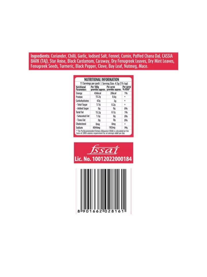 Suhana Chicken Masala 50g Description The Suhana Chicken Masala 50g pack contains an aromatic and balanced blend of whole and ground spices designed to create a delicious and authentic Indian chicken curry or gravy. Product Type: Blended Spice Mix (Masala Powder). Net Quantity: 50 grams. Purpose: To flavor and season chicken dishes, typically resulting in a rich, flavorful curry or gravy. Key Features (often highlighted by the brand): Authentic Flavor: Carefully selected and proportioned spices to provide a traditional Indian taste. Convenience: Simplifies the cooking process by combining multiple spices into one mix, reducing preparation time. Quality: Usually made from quality spices with No Artificial Colours (check the specific packaging for the most current details on preservatives or additives). Usage: The 50g pack is typically sufficient for preparing a standard quantity of chicken (often around 500g, though recipes vary). Instructions on the box or pouch usually guide the user on how much to use and the cooking method, which often involves mixing the masala with other ingredients like onions, tomatoes, and the chicken itself. Packaging: Typically comes in a small, sealed box or pouch to maintain freshness and aroma. In essence, it's a quick and reliable way to bring the robust flavors of a homemade Indian chicken curry to your kitchen.