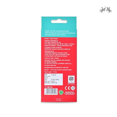Complete Colour Pencil Set – Includes 24 vibrant triangular colour pencils for endless creativity and detailed artwork. Triangular Colour Pencils for Better Grip – Ergonomically designed shape helps kids maintain a proper grip and write or colour with ease. Perfect Colour Set for Kids (6–12 Years) – Ideal for school projects, drawing, colouring books, and art class activities. Smooth Colour Application – Richly pigmented leads provide smooth, even colour payoff on all paper types. Durable & Break-Resistant – Made with high-quality materials to withstand regular use at school and home.