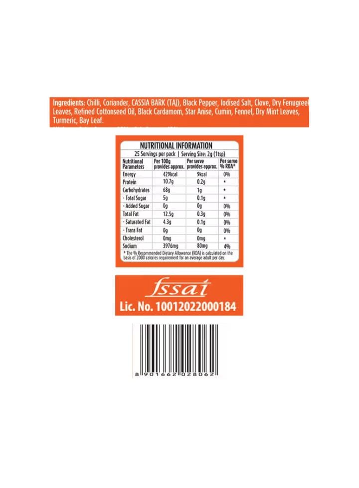 Masala 50g packet contains a meticulously blended mix of ground and whole spices, specifically formulated to enhance the robust and savory flavor of mutton (goat or lamb meat) preparations, typically curries or gravies. Key Product Details Product Type: Blended Spice Mix (Masala Powder). Net Quantity: 50 grams. Purpose: To season, color, and flavor traditional Indian mutton/meat curries, creating a rich, thick, and aromatic gravy. Flavor Profile: It offers an authentic, robust, and moderately spicy flavor, with earthy notes from the core spices balanced by aromatic whole spices. Typical Ingredients While the exact proportions are proprietary, the blend is known to include a variety of essential Indian spices to create a deep, complex flavor. Common ingredients often found in this mix are: Heat & Colour: Chilli (for heat and color), Turmeric. Aromatics & Bulk: Coriander, Cumin, Fennel. Whole Spices: Black Cardamom, Cassia Bark (Cinnamon/Taj), Cloves, Black Pepper, Star Anise, Bay Leaf. Other Seasonings: Common Salt, Dry Fenugreek Leaves (Kasoori Methi), and sometimes a small amount of refined oil or mint leaves. Usage and Features Convenience: It simplifies the process of making a traditional meat curry by providing all the necessary, balanced spices in one packet. Yield: The 50g pack is typically designed to season a standard amount of meat (e.g., around 500g to 1 kg of mutton), depending on the recipe's desired intensity. Quality: The product is often advertised as being free from artificial colors and flavors. Packaging: It usually comes in a small, sealed box or pouch that preserves the freshness and potency of the spices.